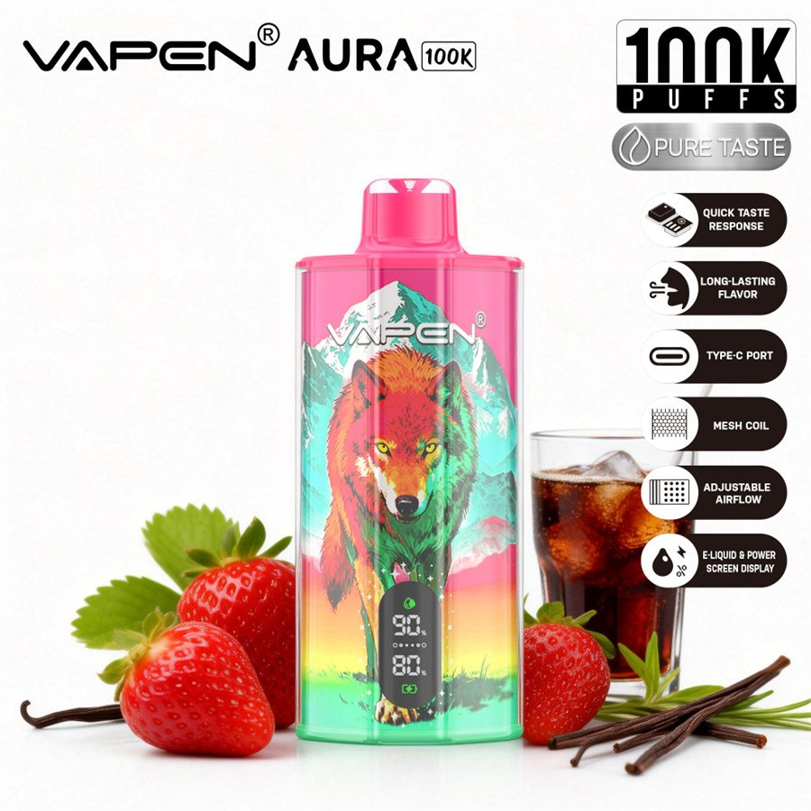 Experience the future of vaping with the VAPEN AURA 100K puffs, now available for fast shipping from our EU Warehouse. Engineered for extreme longevity, this device delivers an impressive 100,000 puffs—far beyond standard disposables. Choose between 2% or 5% nicotine strength to match your preference.