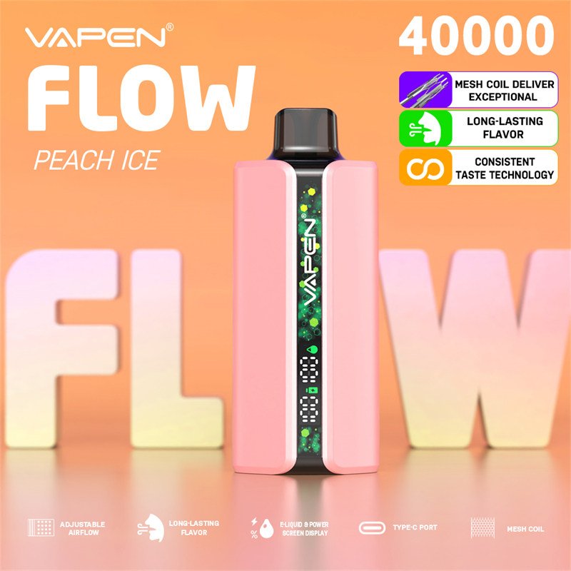 Experience the ultimate convenience with the VAPEN FLOW 40K puffs – a high-capacity disposable vape designed for lasting satisfaction. It delivers up to 40,000 puffs, so you can enjoy it for a long time without worrying about running out. The device features a clear oil and battery level display, which tells you exactly how much e-liquid and power you have left. Plus, the mesh coil technology gives you better flavor and bigger vapor from every puff. You can choose between 2% or 5% nicotine strength and pick from 20 different flavors to suit your taste.